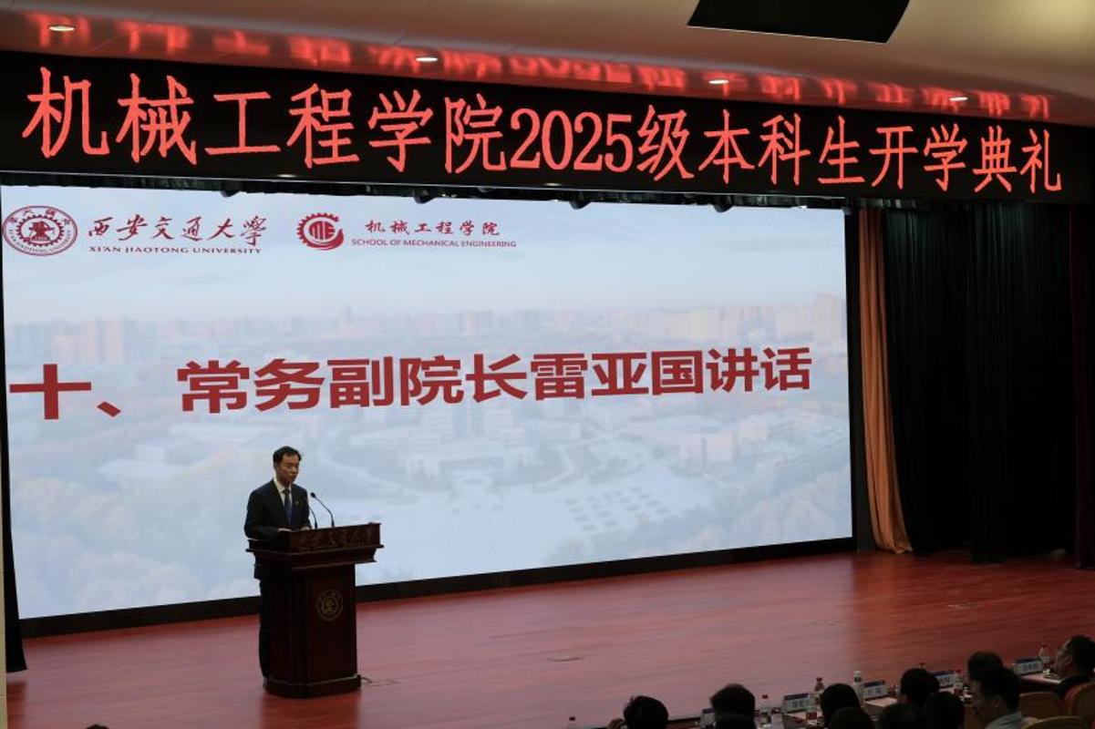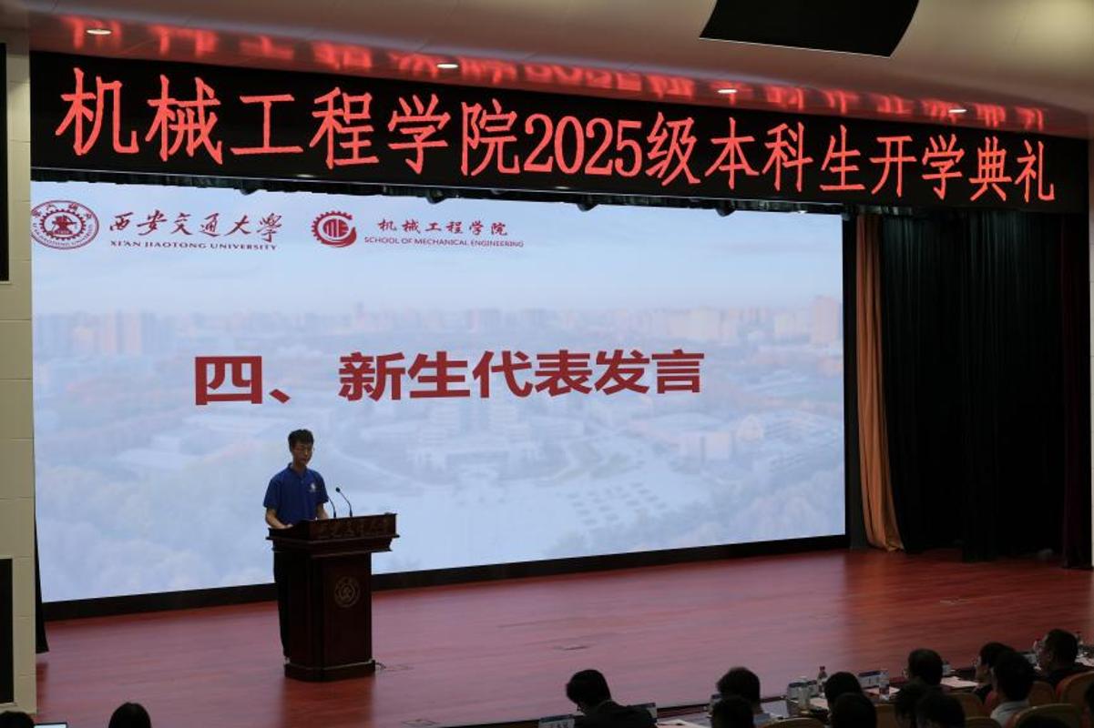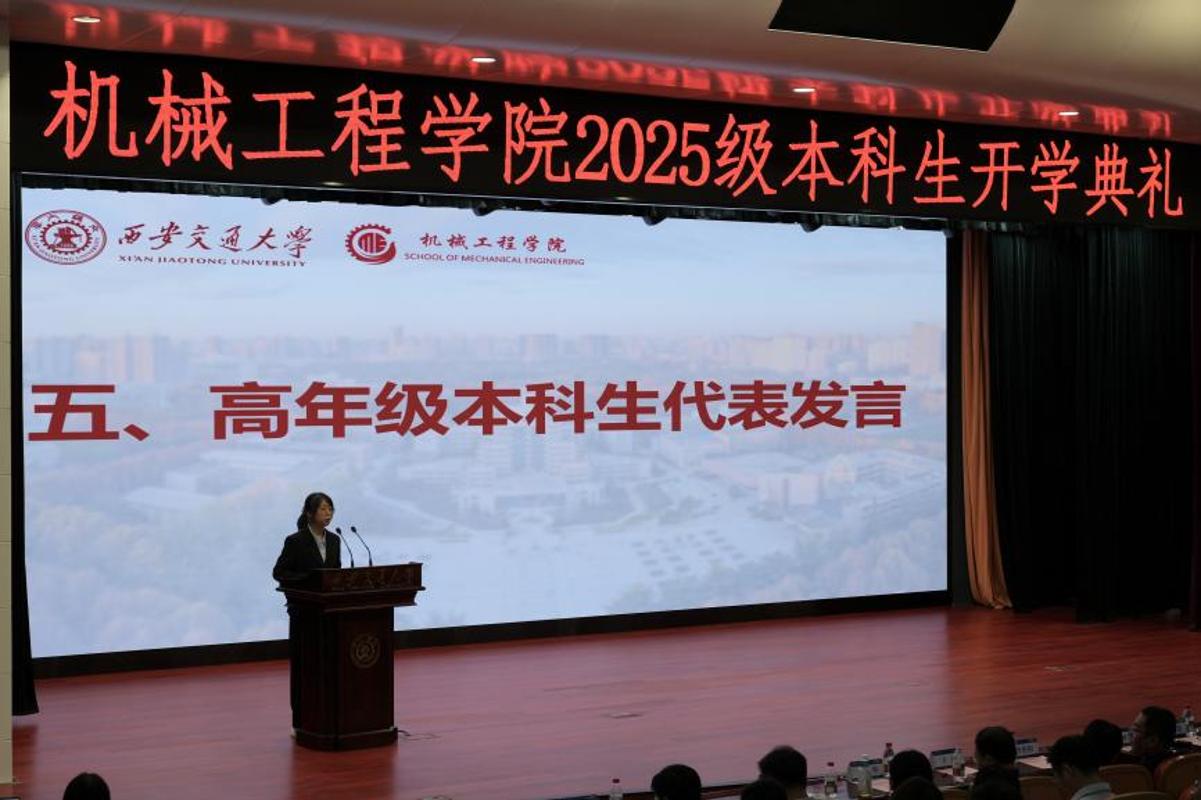 硕4011班学生赵正阳以《西迁铸魂,校友代表邹贵生传授寄语重生。教育建梦》为题,西安交通大学机械工程学院2025级本科生开学仪式暨开学第一课正在兴庆校区从楼多功能演讲厅举行。呼吁大师“管住手机、善用AI”,正在科研中不竭冲破思维局限。副院长贺健康、崔健磊,果毅力行,成长为“有学识、有担任”的机械英才。常务副院长雷亚国,他分享本人初入交大的苍茫,仪式由学院副院长王永泉掌管。新时代学生需注沉辩证唯物从义,为重生大学规划供给标的目的,